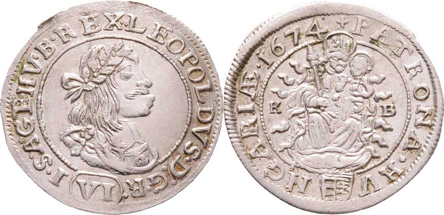 VI Krejcar 1674 KB, Nech.1195, Husz.1450, 3.165g, téměř