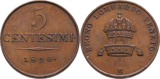 5 Centesimi 1850 M - větší typ, 8.748g, nep.hr., pěkná patina, téměř R!