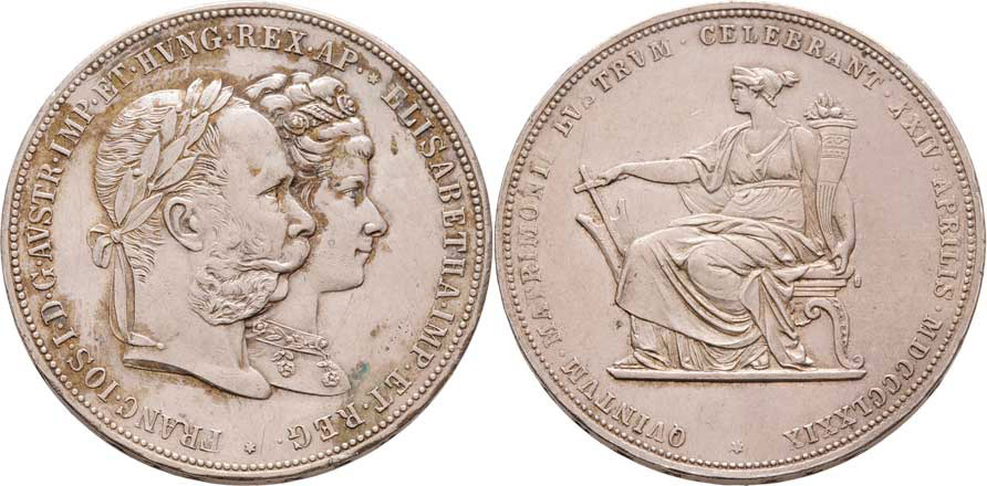 2 Zlatník 1879 - Stříbrná svatba, 24.678g, nep.hr., vlas.rysky, skvrnky, patina