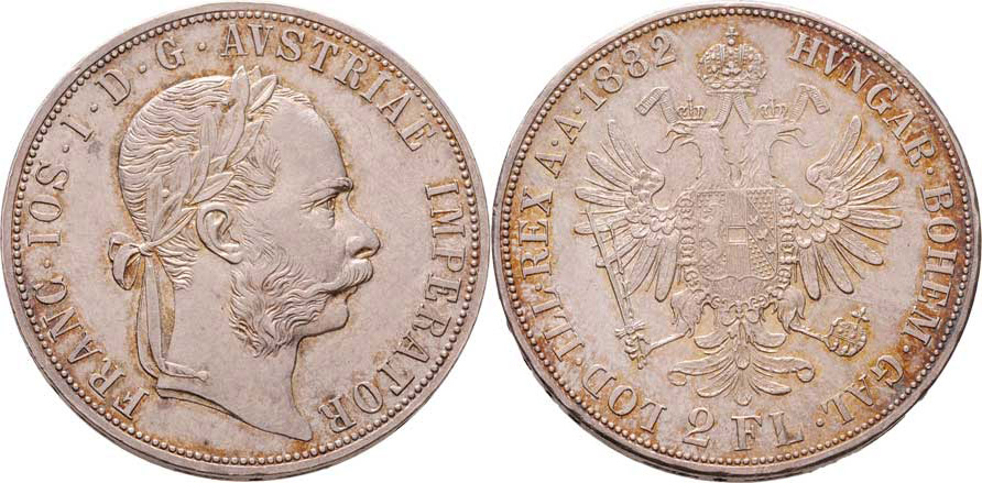 2 Zlatník 1882, 24.585g, dr.hr., vlas.rysky, pěkná patina