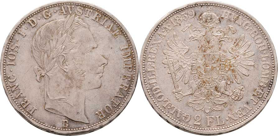 2 Zlatník 1859 B, 24.647g, dr.hr., dr.rysky, patina