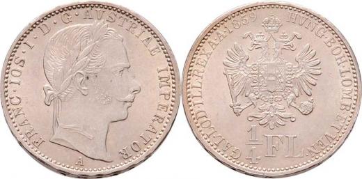 1/4 Zlatník 1859 A, 5.328g, nep.hr., nep.rysky, pěkná patina, téměř