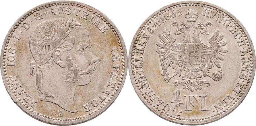 1/4 Zlatník 1866 A, 5.339g, nep.hr., nep.rysky, pěkná patina RR!