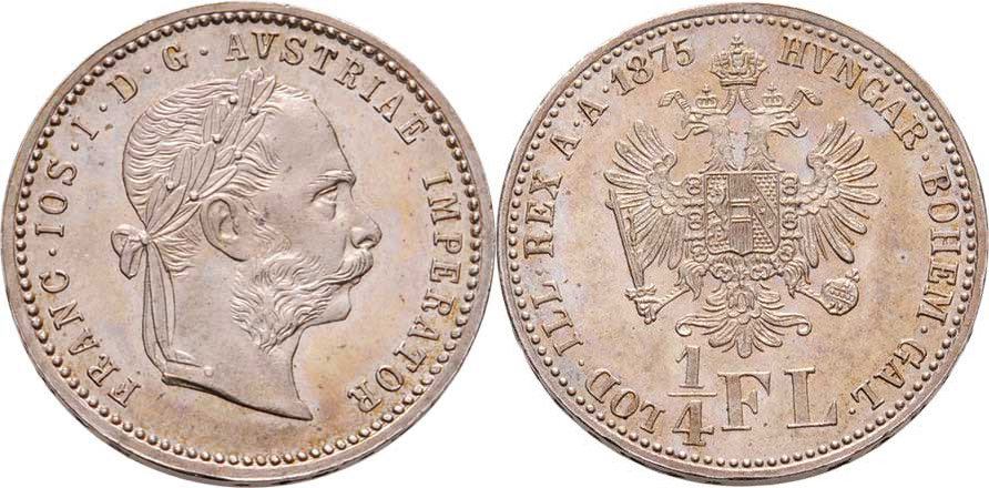 1/4 Zlatník 1875, 5.341g, krásná patina RR!