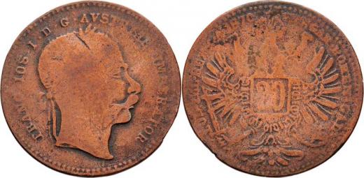 20 Krejcar 1870 - falzum ke škodě oběhu, měď 21mm, 2.484g, pěkná patina R!