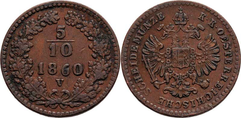 5/10 Krejcaru 1860 V, 1.640g, nep.rysky, pěkná patina R!