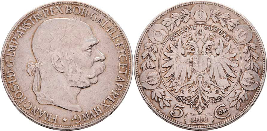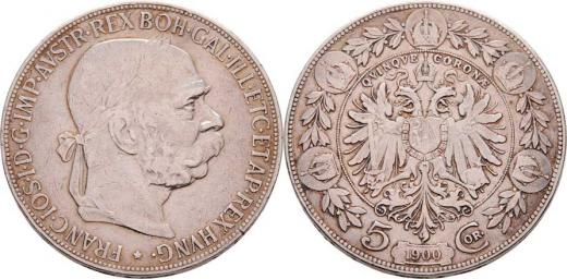 5 Koruna 1900, 23.860g, dr.hr., rysky, pěkná patina