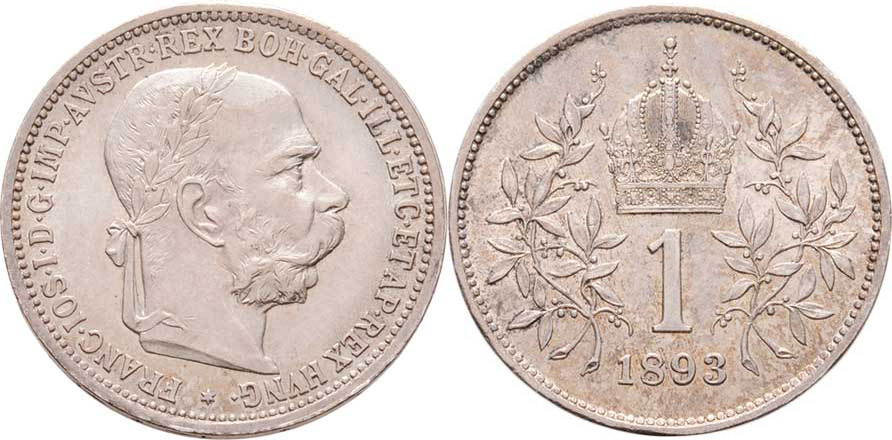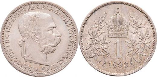 Koruna 1893, 4.925g, nep.hr., nep.rysky, pěkná patina, téměř