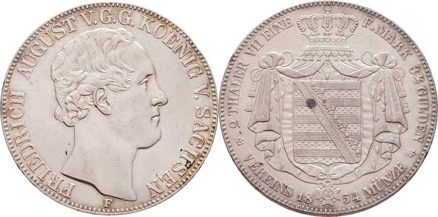 2 Tolar 1854 F, Drážďany, KM.1149 (Ag900), 37.143g, dr.hr., vlas.rysky, skvrnka, patina