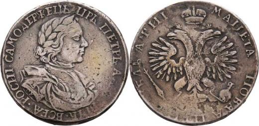 Rubl 1718 - znakový - slovanský letopočet, Sign.OK, Uzd.537 (skupina I.Ž/k), KM.157.1, 25.812g, stopa po oušku, stopy po uchycení na hraně, vady mater., pat.