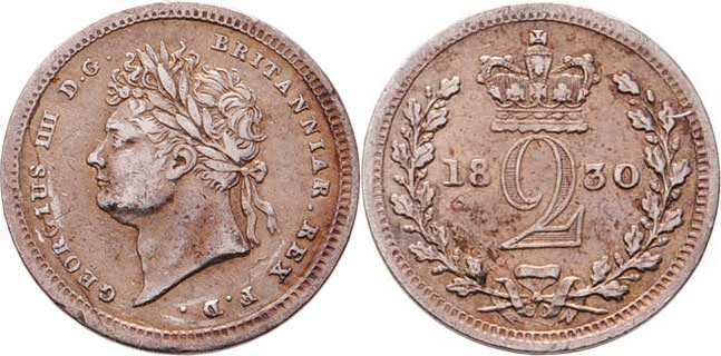 2 Pence 1830, Londýn, SCBC.3820, KM.684 (Ag925, pouze 3.960 ks), 0.933g, nep.hr., nep.rysky, pěkná pat. R!
