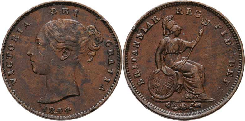 1/3 Farthing 1844, Londýn, SCBC.3952, KM.743 (Cu), 1.517g, dr.hr., nep.rysky, pěkná patina R!