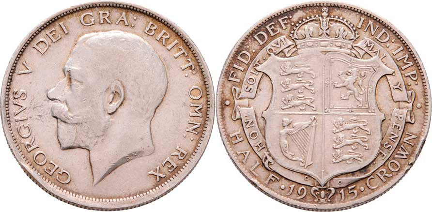 1/2 Crown 1915, Londýn, SCBC.4011, KM.818.1 (Ag925), 14.061g, hr., dr.rysky, pěkná patina