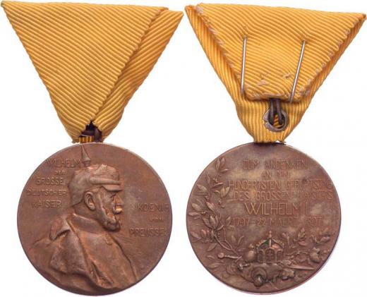 Vilém I. - pamětní medaile na 100 let narození 1897, BB.136, Nimmergut.1965/1, nepůvodní trojúhel. stuha
