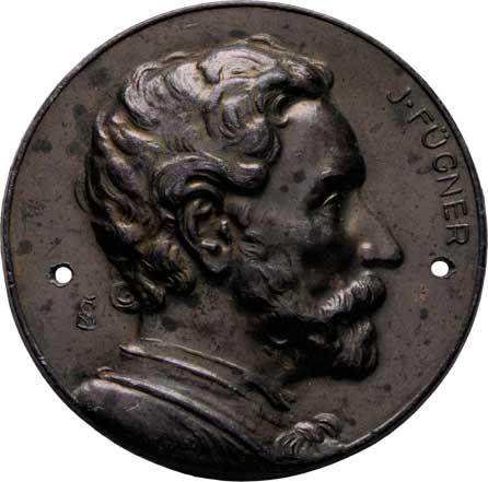 Jindřich Fügner b.l. (1919) - poprsí zprava, opis, Sign., jednostranná dutá medaile, slitina olova a cínu, 60mm, dvě provrtané dírky, nep.hr.