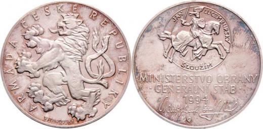 Ministerstvo obrany ČR, Generální štáb 1994 - replika pečeti Jana Lucemburského, 4-řádk.nápis / korunovaný český lev, opis, Sign., postříbř. bronz 40mm, kapsle
