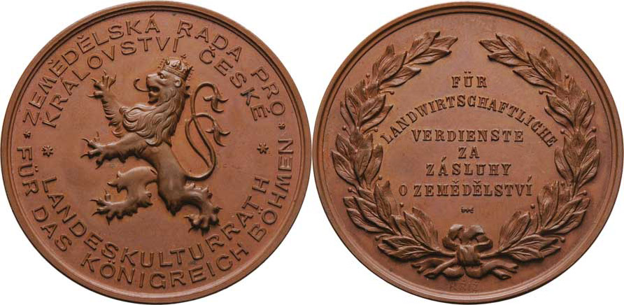 Kříž - Zemědělská rada pro Království české b.l. - český lev, opisy/ česko-němec. nápis ve věnci, Sign., bronz 42mm, jako ŠFP.6c (uděleno 241 ks), pat., etue
