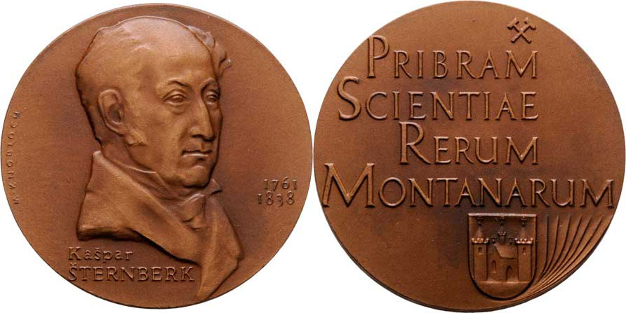 Hornická Příbram - Kašpar Šternberk, 1761 - 1838, b.l. - poprsí mírně zprava, opis / hornická kladívka, a latinský nápis, znak, Sign.Knobloch, bronz 50 mm