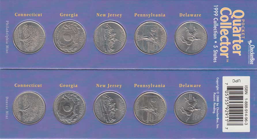 Sada mincí v etui - 1/4 Dolary 1999 D, 1999 P (CuNi): Connecticut, Delaware, Georgia, New Jersey, Pennsylvania, KM.293-297 10ks
