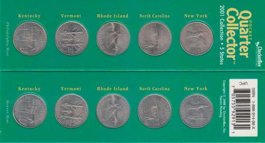 Sada mincí v etui - 1/4 Dolary 2001 D, 2001 P (CuNi): Kentucky, New York, North Carolina, Rhode Island, Vermont, KM.318-322 10ks