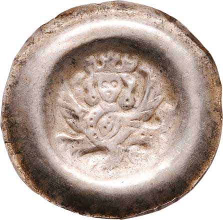 Brakteát český, Ca.850, F.XXII/7 (2220), 0.597g, pěkná patina, téměř