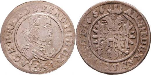 3 Krejcar 1656 bz, Vratislav-Hübner, MKČ.1295, podob. jako ČS.705, 1.737g, nep. vady materiálu, nep.nedor., pěkná patina