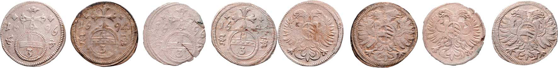 Grešle 2x 1694, 2x 1696, vše Opolí-Wackerl, T.109,168 , vše MKČ.1684b, Nech.883,885, pat., 1ks olámaný 4ks