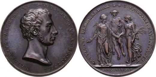 Manfredini - AE pamětní medaile 1818 - poprsí zprava, opis / Minerva, Merkur a Ceres, opis a nápis, Sign., 37mm, 36.608g, H.3597(AR), M.2479(AR), patina R!