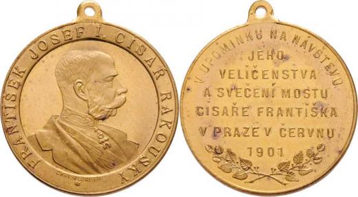 Christlbauer - návštěva v Praze a svěcení mostu 1901 - poprsí zprava, český opis / opis a 6-řádkový nápis, lipové snítky, Sign., mosaz 28 mm s původním ouškem
