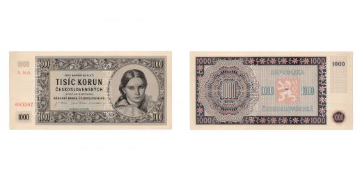 1000 Koruna 1945, série 16A - bankovní vzor, perfor. 2x svisle "SPECIMEN", Kar.75c, jako BHK.78a