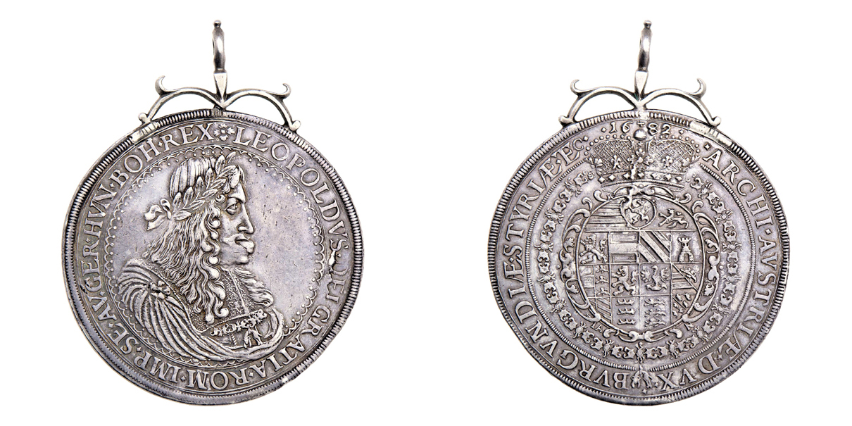 2 Tolar široký 1682, Štýrský Hradec-Nowak, Nech.2116, M-A.181, 59.403g včetně závěsu, dr.vady razidla, pěkná patina RR!