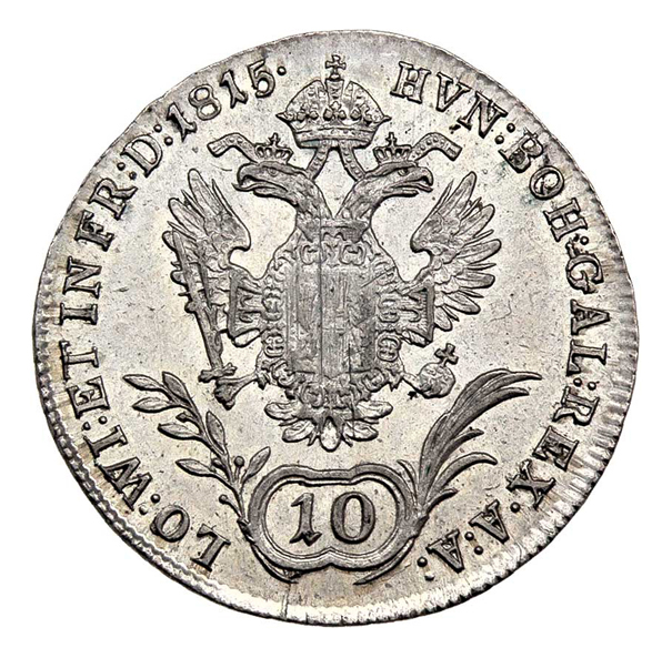 10 Krejcar 1815 A, 3.908g, mírně just., patina, téměř R!