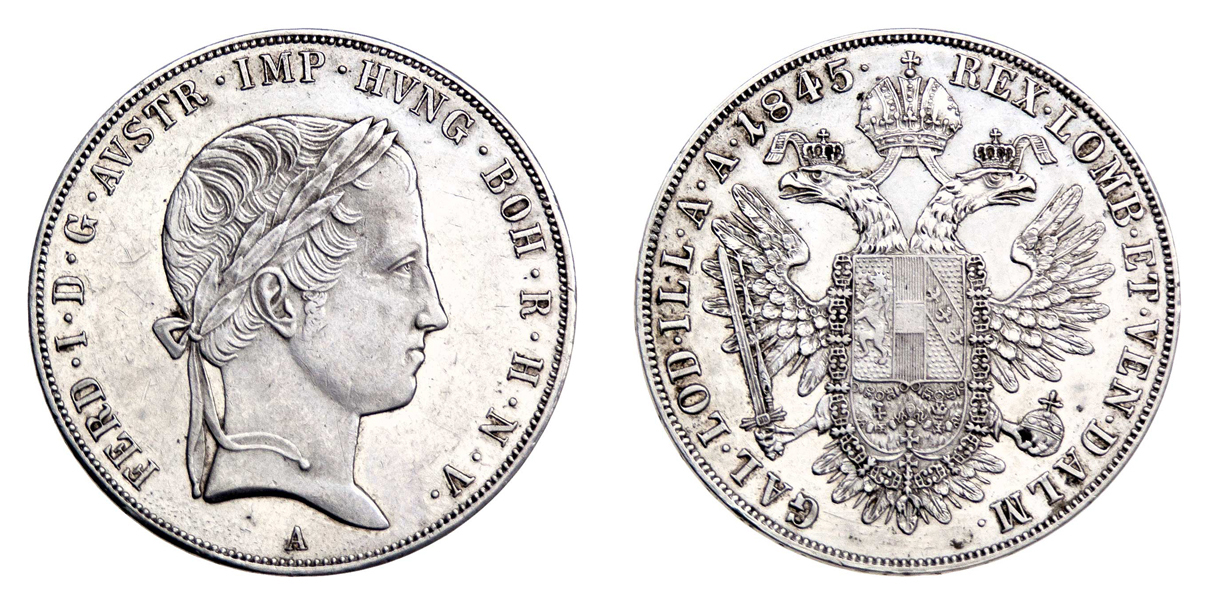 Tolar 1845 A, 27.909g, nep.hr., vl.rysky, pěkná patina, téměř