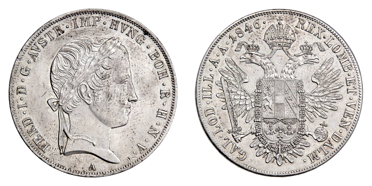 Tolar 1846 A - varianta bez opisu na hraně, 28.047g, nep.hr., dr.škr., vlas.rysky, patina, téměř RR!