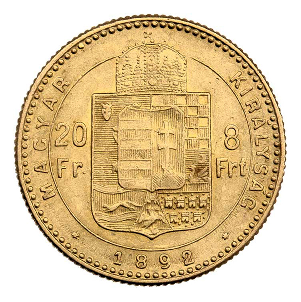 8 Zlatník 1892 KB - se znakem Rijeky, 6.449g, nep.hr., nep.rysky, patina, téměř