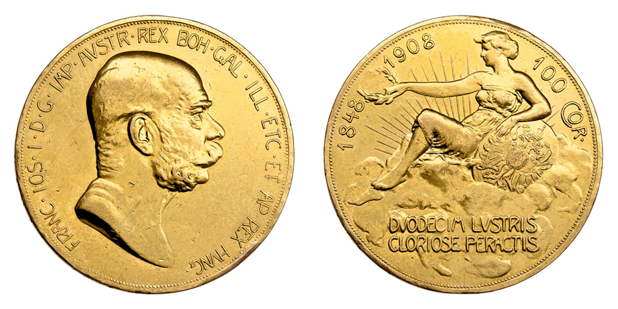 100 Koruna 1908 - jubilejní (pouze 16.000 ks)