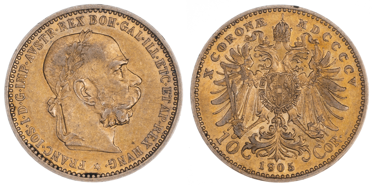 10 Koruna 1905, 3.375g, hr., dr.rysky, patina