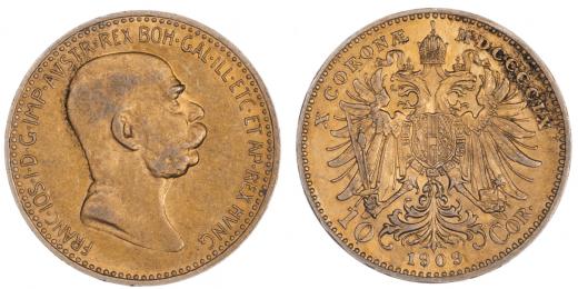 10 Koruna 1909 - Marschall, 3.370g, nep.hr., nep.rys.