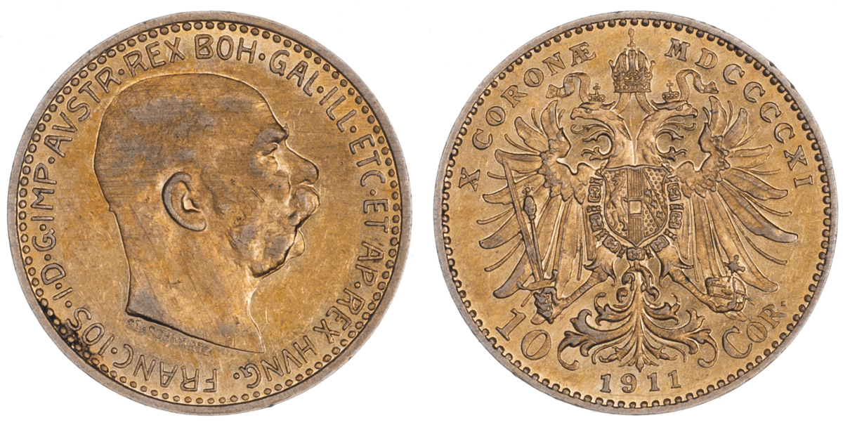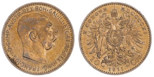 10 Koruna 1911 - Schwartz, 3.377g, dr.hr., dr.rysky, patina