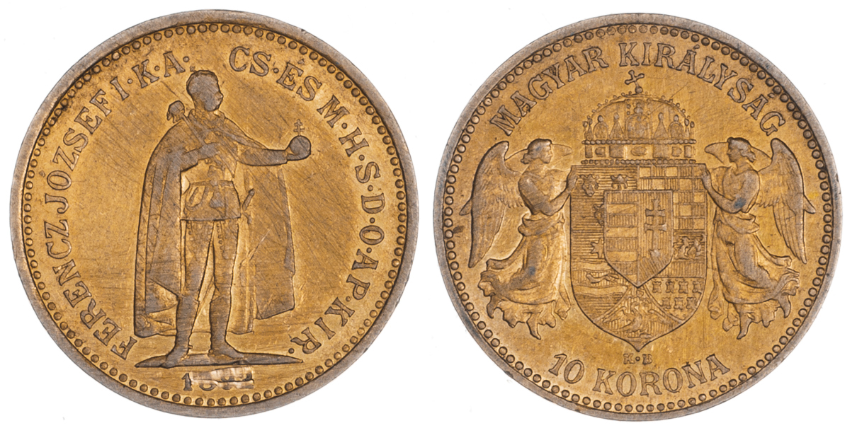 10 Koruna 1892(?) KB, 3.355g, letopočet vyškrábaný, poslední číslice téměř nečitelná, vl.rysky, patina