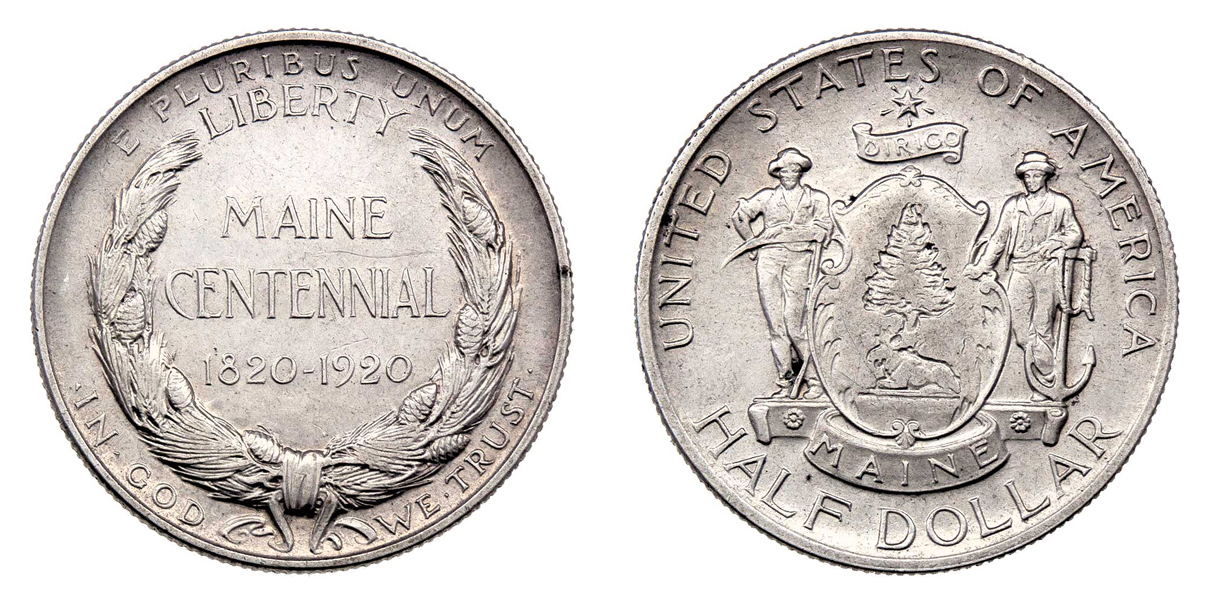 1/2 Dolar 1920 - Maine, KM.146 (pouze 50.028 ks), 12.470g, nep.hr., nep.rysky, pěkná patina R!