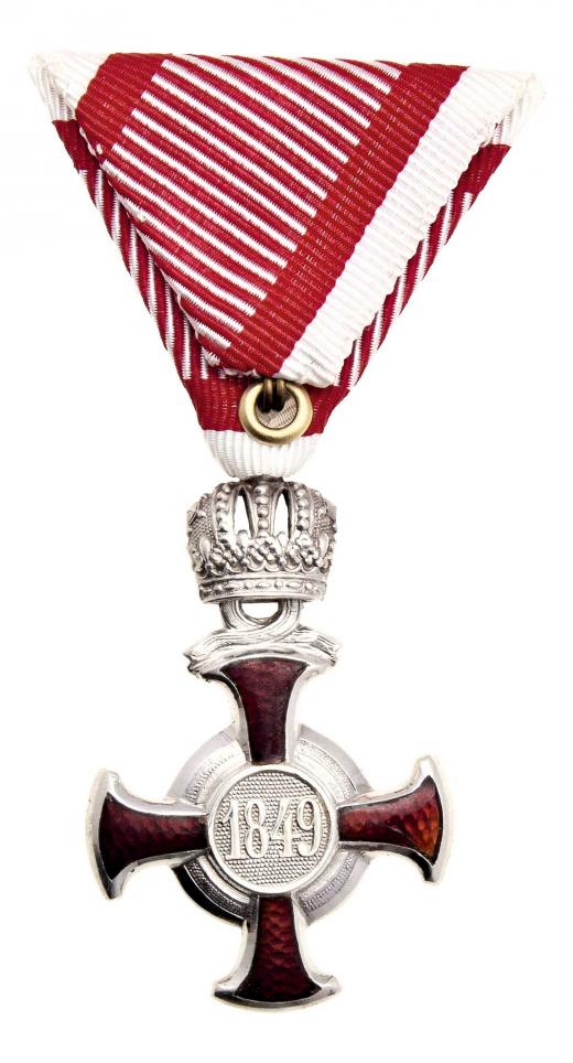 Stříbrný zásl.kříž s korunou, Marko.140c, VM.2/6-C-5, puncované Ag, výrobce Mayers-Söhne-Wien, poškozený smalt, nepůvodní stuha