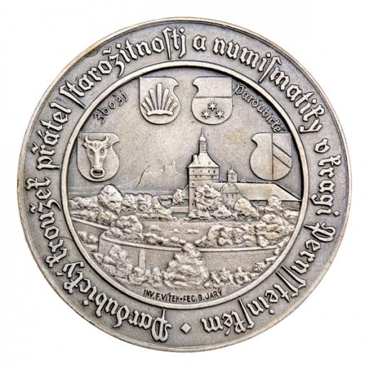 Vítek a Jarý - 600 let povýšení na město 1940 - Zelená brána, znak, opis a nápis/ zámek a čtyři erby, opis, Sign., Punc., patin. Ag800, 50mm, 51.069g RR!