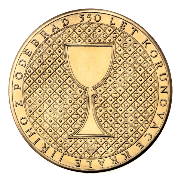 PF 2008 - kalich na iniciálách Jiřího z Poděbrad / v paprscích jména vydavatelů, velké "PF" a opis, Sign., mosaz 30mm, 11.614g, patina R!