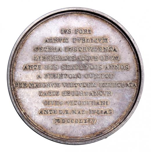 Rudolf I. Habsburský - AR pamětní medaile 1864 - král na koni doleva, pět lilií, latinský opis / 11-řádkový nápis, Nesign., 45mm, 44.377g, krásná patina R!