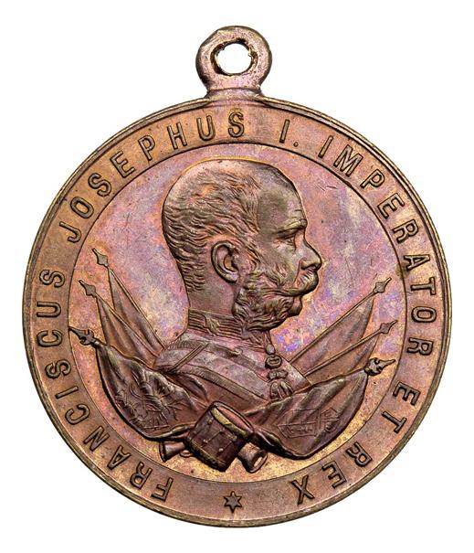 Císařské manévry (bez uvedení místa) 1895 - poprsí Fr.Josefa I., buben, prapory, latin.opis / něm.nápis ve věnci, M-B.27, zlac.bronz 32 mm s původ.ouškem