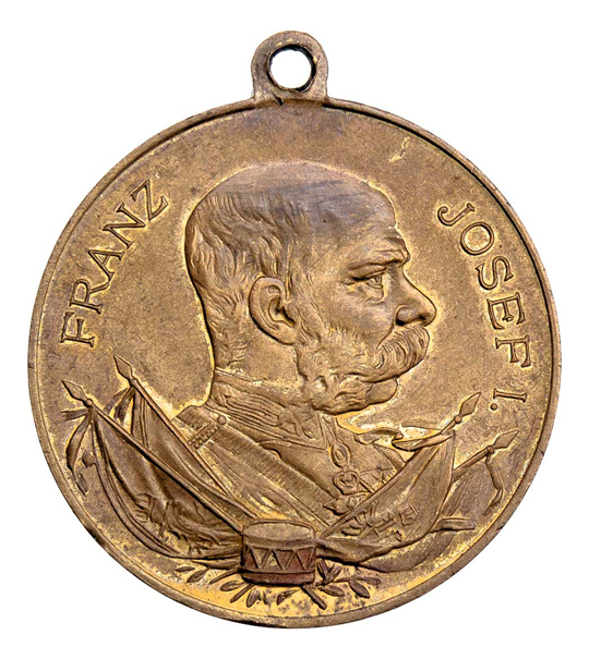 Klagenfurt 1907 - poprsí císaře Fr.Josefa zprava, něm.opis / důstojníci na koních, 2-řádkový něm.nápis, M-B.75, mosaz 29 mm s původním raženým ouškem, téměř