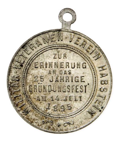 Jestřebí (Habstein) 1895 - 25 let trvání spolku, 14.7., zbraně a prapory, něm.opis / 7-řádk.něm.nápis a opis, postř.bronz 31 mm s raženým ouškem, patina