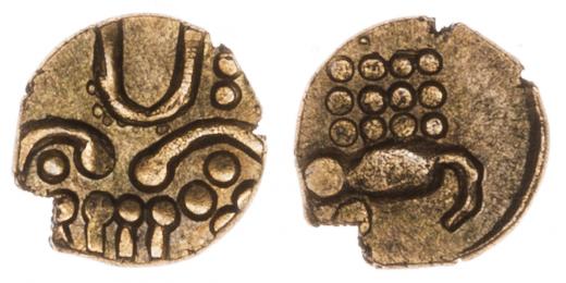 1 Fanam b.l. (1740 - 1780), Fr.1504, podobný MN.1585, 0.375g, mírně exc., nepravidelný okraj, pěkná patina