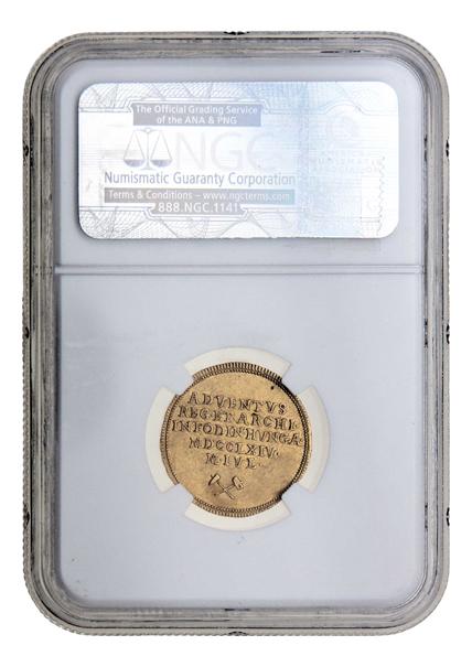 Dukát 1764 - na návštěvu v uherských horních městech, portréty proti sobě, opis /5-řádkový nápis a zkřížená kladívka, M.1928, H.3130, 3.479g, patina, etue "NGC"